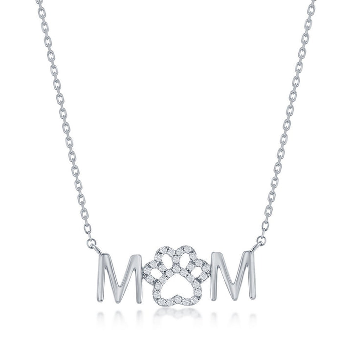 Sterling Silver 'MOM' Paw Print CZ Necklace
